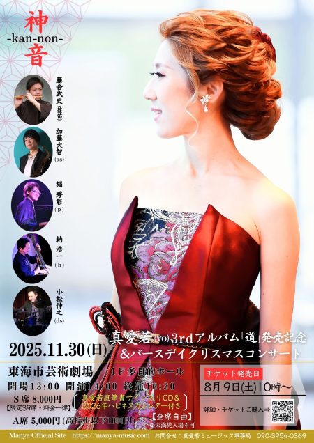神音ーkan-non-真愛若(vo)3rdアルバム発売記念&ハッピーメリークリスマスLive この度、6年ぶりに3枚目のリーダーアルバム「道Michi」を11/